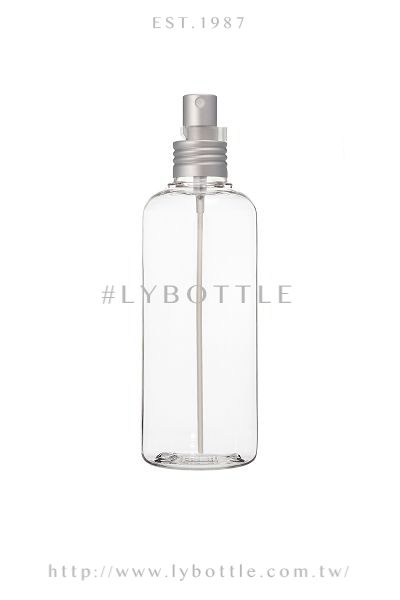 ●直立瓶身,鋁噴頭,鋁製品質感佳 ●瓶身透明潔淨;不耐熱約60度C,具透光性、耐藥性 ●水性噴霧內容物之裝填 ●配件鋁噴頭,按壓噴霧,出量適中,附夾控制開關 ●所標示容量僅作參考